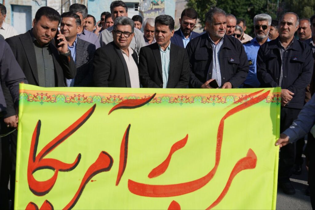 به گزارش پایگاه خبری فیدوس// به مناسبت یوم الله ۱۳ آبان، کارکنان و مدیران و روسای شرکت بهرهبرداری نفت و گاز گچساران همراه با مردم با حضور خود در این راهپیمایی باشکوه بار دیگر انزجار خود را از استکبار جهانی در راس آن آمریکای جنایتکار با صدای بلند فریاد زدند.