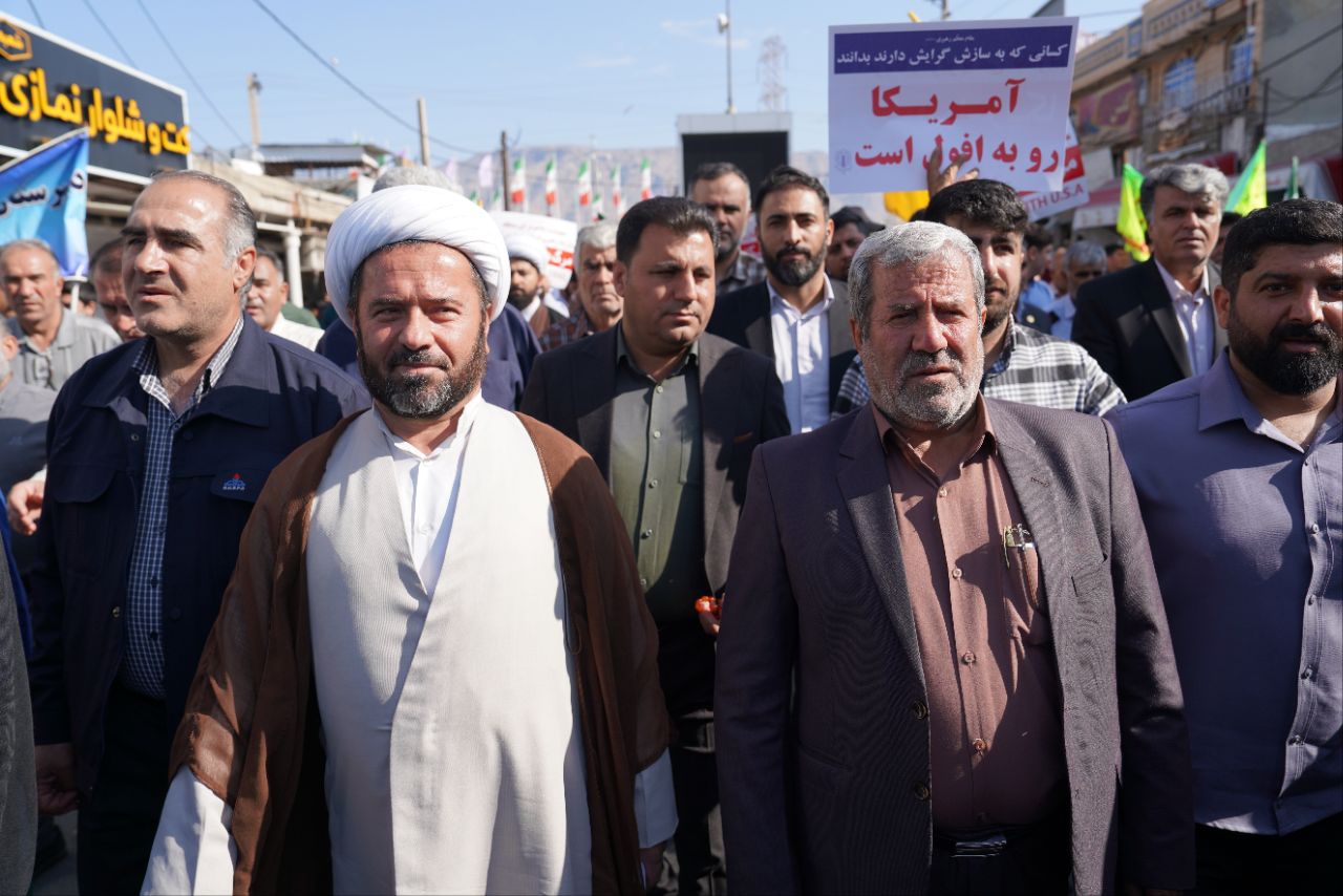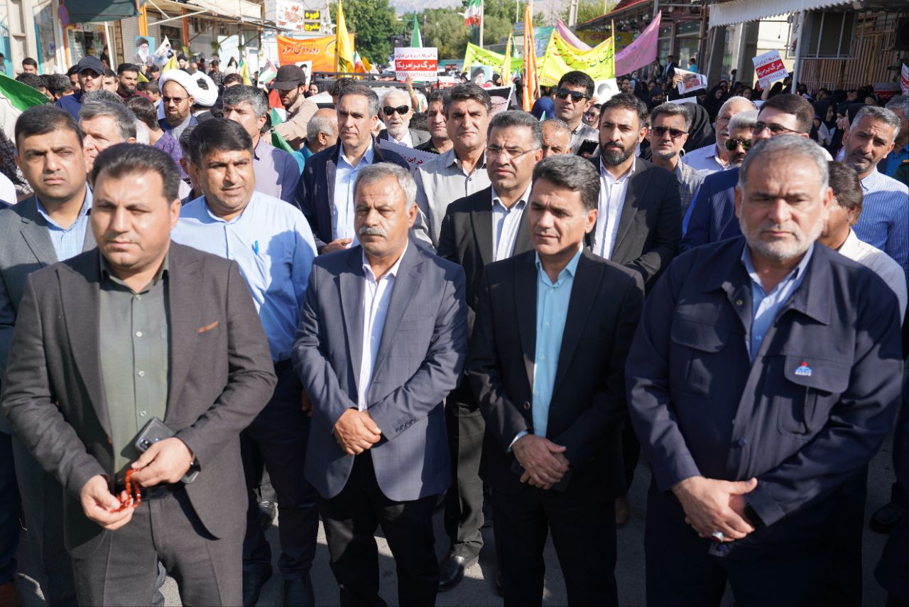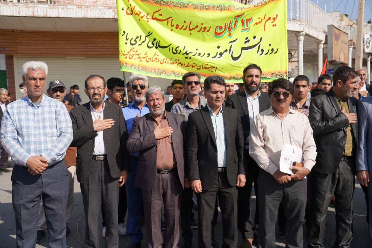 به گزارش پایگاه خبری فیدوس// به مناسبت یوم الله ۱۳ آبان، کارکنان و مدیران و روسای شرکت بهرهبرداری نفت و گاز گچساران همراه با مردم با حضور خود در این راهپیمایی باشکوه بار دیگر انزجار خود را از استکبار جهانی در راس آن آمریکای جنایتکار با صدای بلند فریاد زدند.